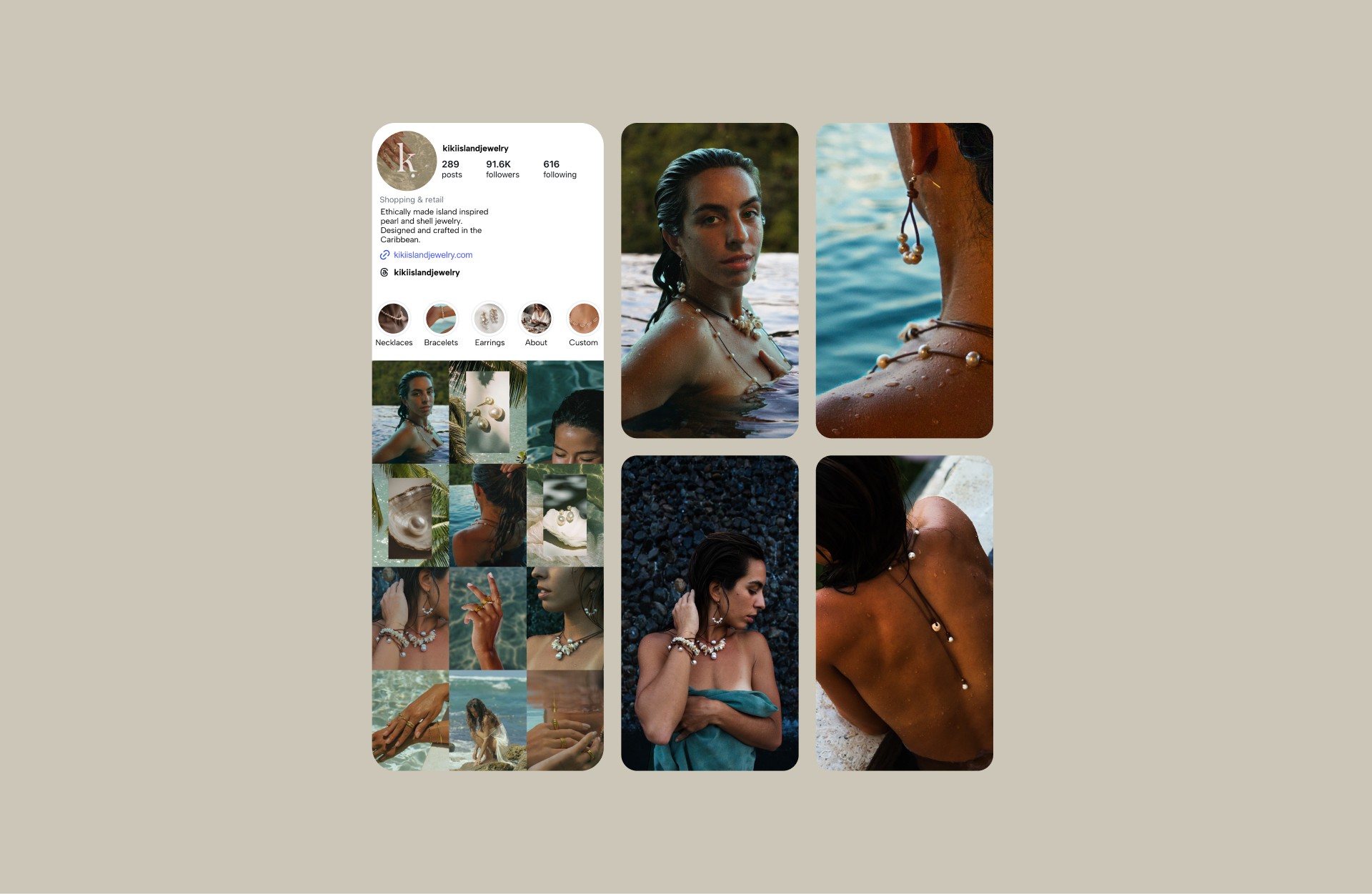 Our work with Island Jewelry focused on translating a deeply personal and place-driven brand into a cohesive visual system. Rooted in the Caribbean and inspired by life in and around the ocean, the brand needed a visual language that could reflect both the product and the lifestyle it belongs to. Through a combination of art direction, photography, and system design, we developed a visual identity that feels natural, effortless, and immersive, capturing the essence of the ocean while creating consistency across digital touchpoints. The result is a brand that moves seamlessly between product and storytelling, grounded in authenticity and connection.